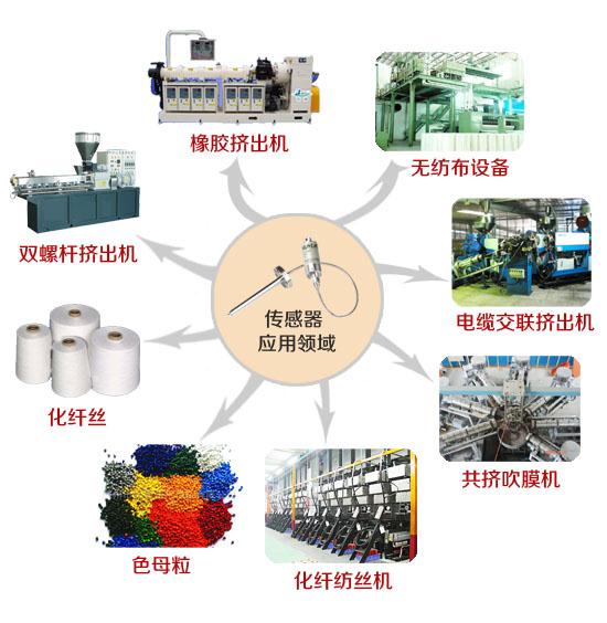 橡膠擠出機,塑料擠出機,塑膠押出機,電纜押出機,紡絲機,注塑機,熔體泵,無紡布設(shè)備等機械行業(yè),產(chǎn)品大量配套于無紡布,色母粒,化纖紡絲,橡膠,塑膠等諸多產(chǎn)品行業(yè)中,水處理,食品機械行業(yè)市場。為我公司環(huán)保型高溫熔體壓力傳感器,高溫熔體壓力變送器主導(dǎo)對象。