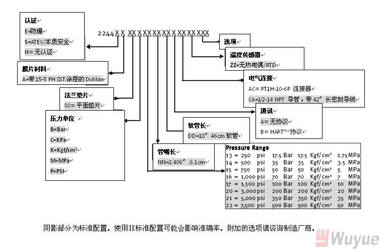 特征 ★ 通過“Z971”選項改進的線性產(chǎn)品 ★ HARTTM數(shù)字通訊系統(tǒng) ★ 4-20mA 環(huán)路供電輸出 ★ 0-250到0-7,500psi ★ 防爆,ATEX/本質(zhì)安全認證 ★ 符合PED和CE要求 優(yōu)點 ★ 線性改進80% ★ 能通過手持式裝置配置 ★ 直接提供輸出給DCS或PLC ★ 由客戶定義壓力量程 ★ 已認證無環(huán)境污染 ★ 符合新的EC要求 產(chǎn)品描述 SPX-L產(chǎn)品是一個靈巧的4-20mA壓力傳感器,能在惡劣的環(huán)境下使用。SPX2242是全焊接結(jié)構(gòu),具有一個大膜片和一個法蘭墊片,便于輕松安裝。SPX2244E有1級,1區(qū),A,B,C&D組的防爆認證。防爆模式采用管道配置。SPX2244S有ATEX/本質(zhì)安全‖1Gooa Eex ia ‖C, 0和1區(qū)的認證。ATEX/本質(zhì)安全模式能通過一個導(dǎo)管配置或一個密封的6針邦迪克斯連接器來提供。SPX-L同樣包括一個新的Dynisco 創(chuàng)新系統(tǒng),DynalarityTM,一個使由材料和加工變化引起的偏置線性化的高級運算法則模塊。 SPX-L2244高溫熔體壓力傳感器(high temperature melt pressure sensor))